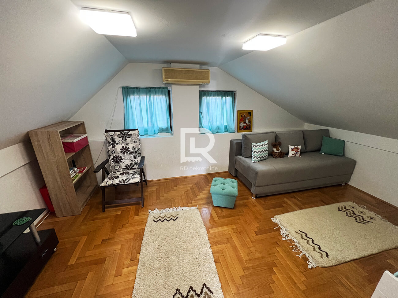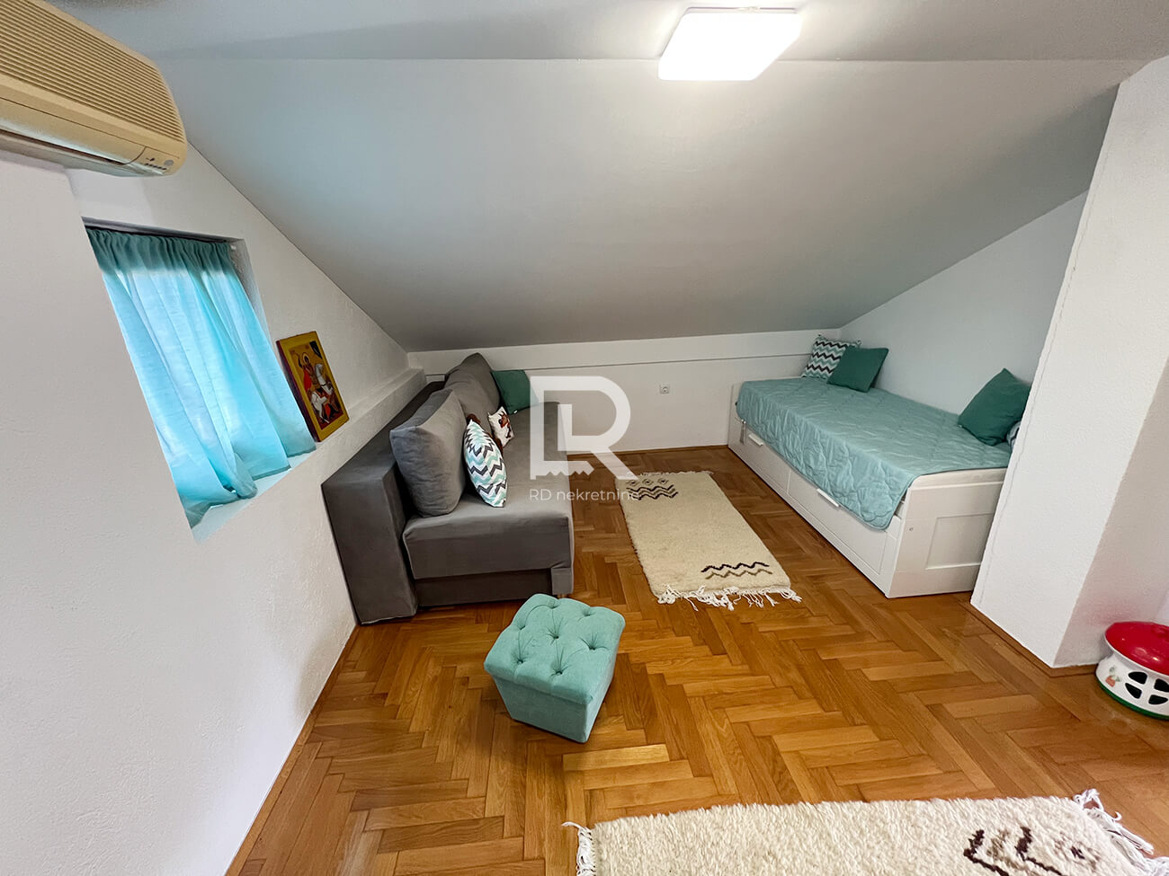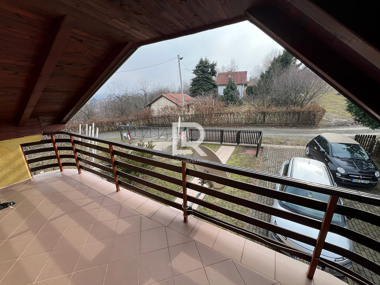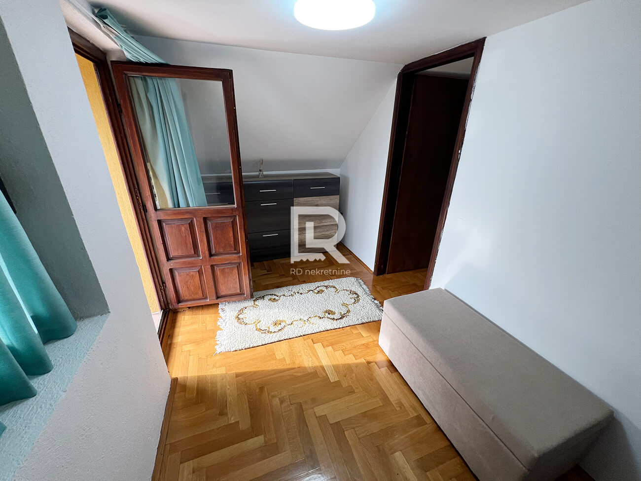 Mansarda – hodnik, spavaća soba i natkrivena terasa, sa pogledom na dvorište i okolno zelenilo