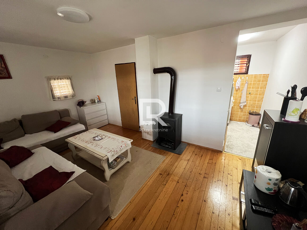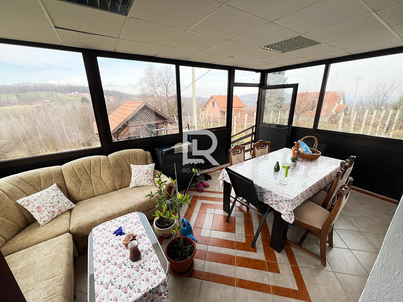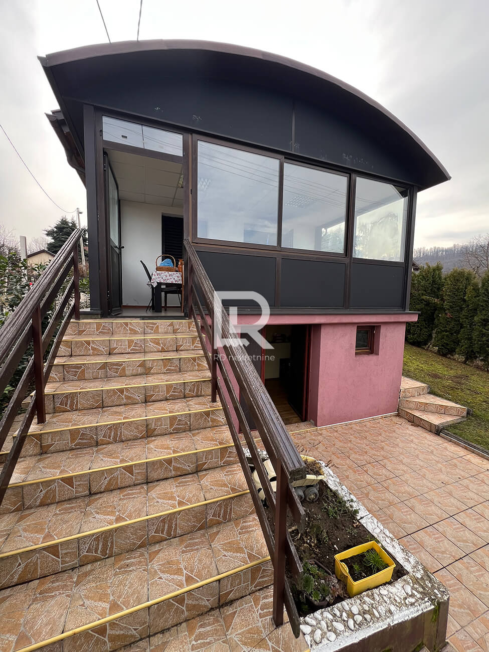 Prizemlje – ulazni hodnik, kupatilo, kuhinja, dnevna soba, stepenice za mansardu i zastakljena terasa, idealna za boravak tokom cijele godine