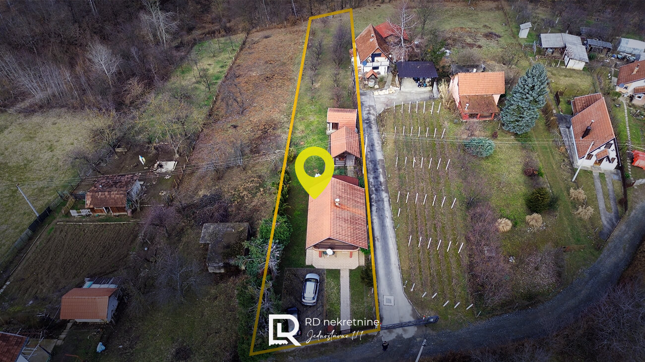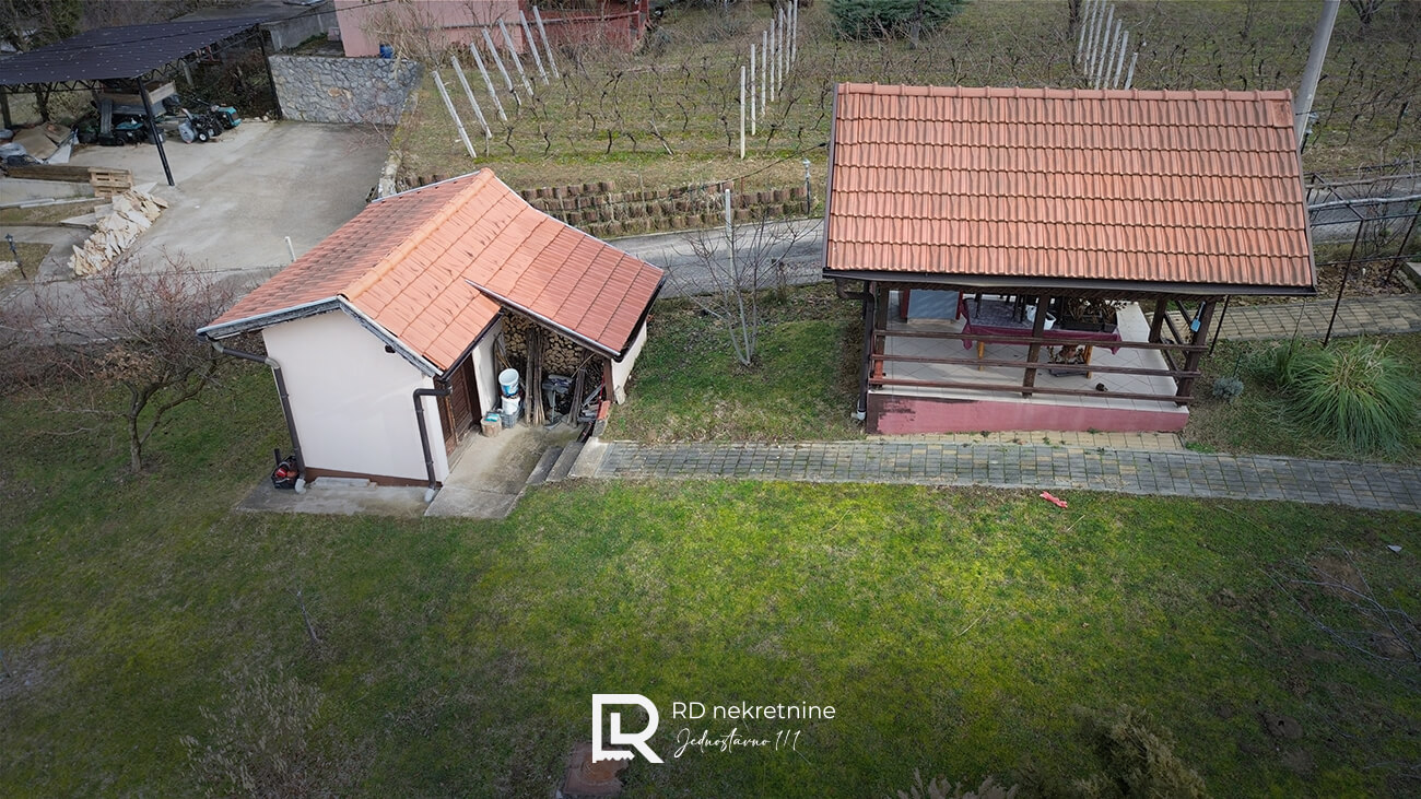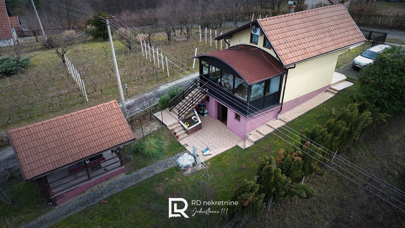 Vikendica je izgrađena po strukturi SU + P + M, sa osnovom od 50 m², a nalazi se na prostranoj i ograđenoj parceli površine 1.238 m², okruženoj prirodom i zelenilom.