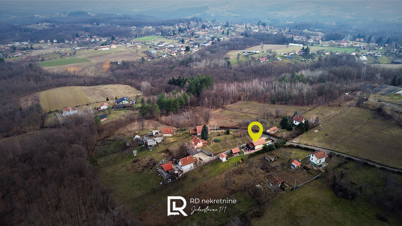 Prilaz nekretnini je asfaltni put, dok je posljednjih 300 metara makadamski, što dodatno doprinosi osjećaju izdvojenosti i mira.
